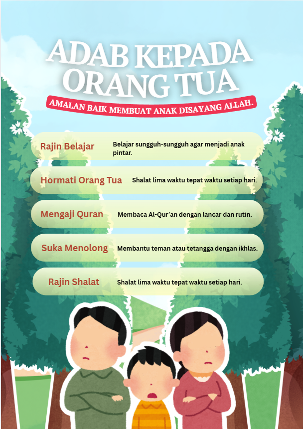 haiii friends welcome to my website!!!  today i will tell about Manners with parents, is about showing respect and good behavior to our parents and this topic is presented using a poster made with Canva that shows simple messages like speaking politely and listening to parents it teaches children to obey and help their parents every day good manners make parents happy and build a loving family and this poster is easy to understand and attractive to see.