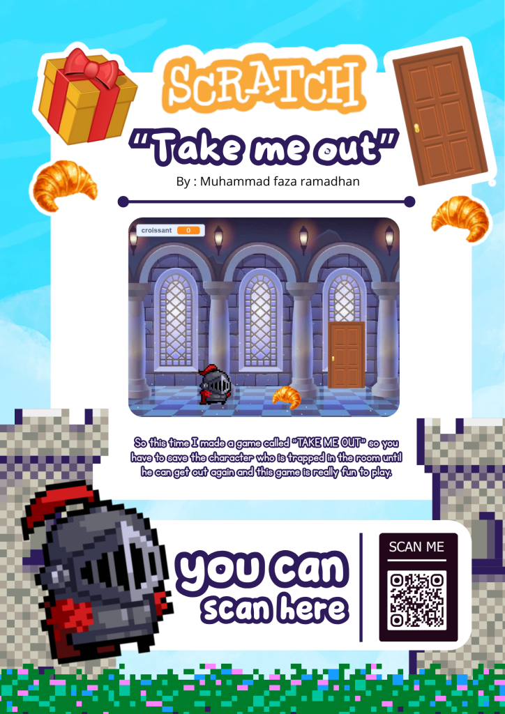 HI everyone welcome to my website!!! and this time I uploaded a game with the theme “TAKE ME OUT” so you have to help a character who is locked in a room. You have to take the specified croissant. After that, you answer questions through the gift box to be able to escape the room.